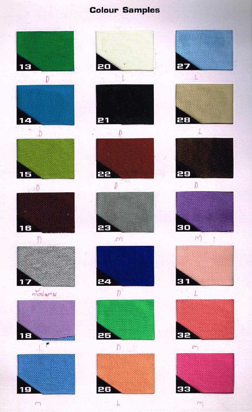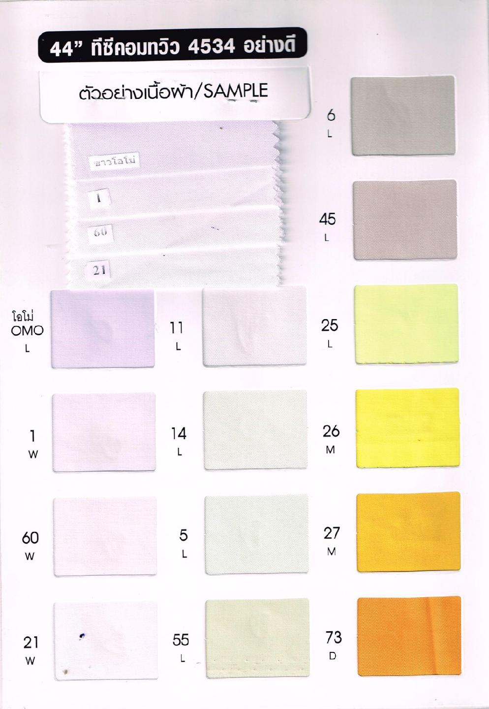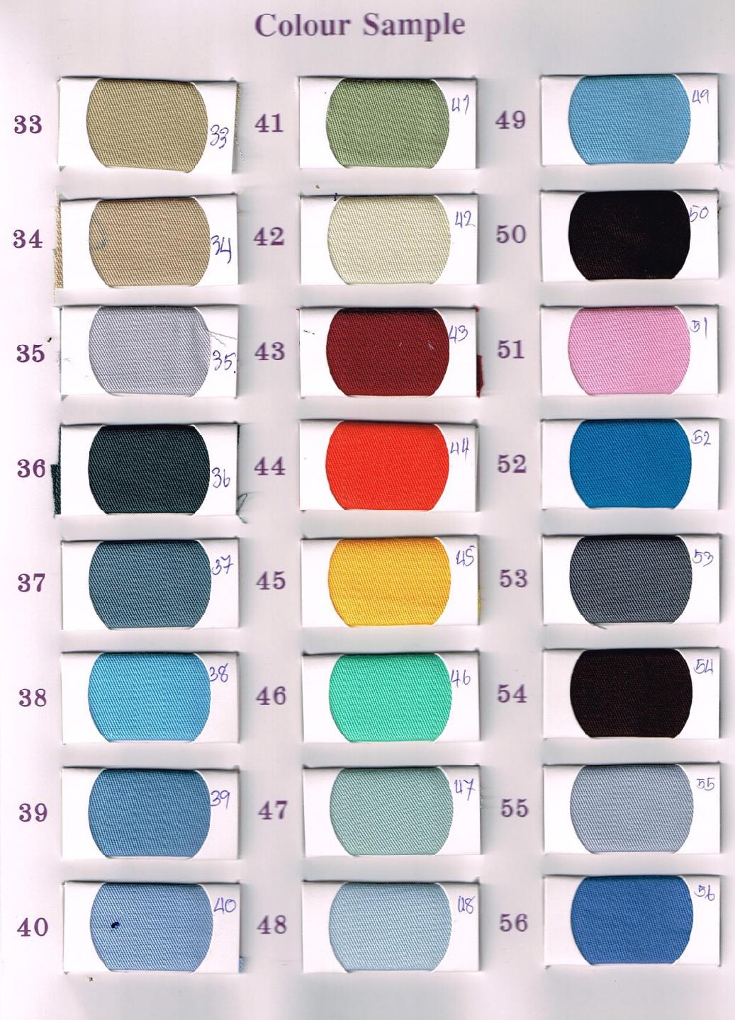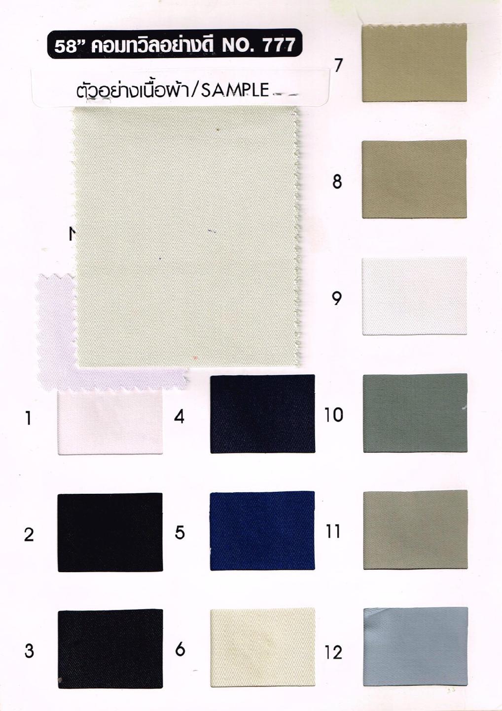 1. ผ้าคอมทวิว เป็นผ้าฝ้ายผสมใยสังเคราะห์ (TC) มีส่วนผสมของ Cotton 35% และ Polyester เส้นด้ายใยสังเคราะห์ 65% เนื้อผ้าแน่น ทอเส้นด้าย 210 เส้น คุณสมบัติ: ผ้าไม่ค่อยยับ อยู่ทรง ทนต่อแสงแดดได้ดี ซักรีดง่าย มีสีให้เลือกเยอะ ราคาไม่แพง