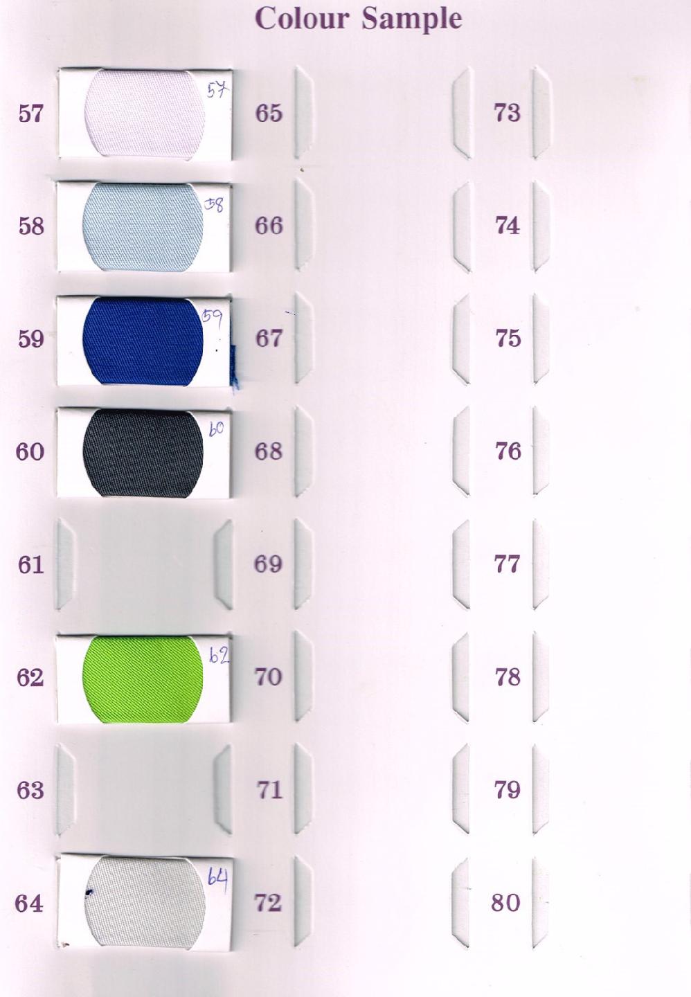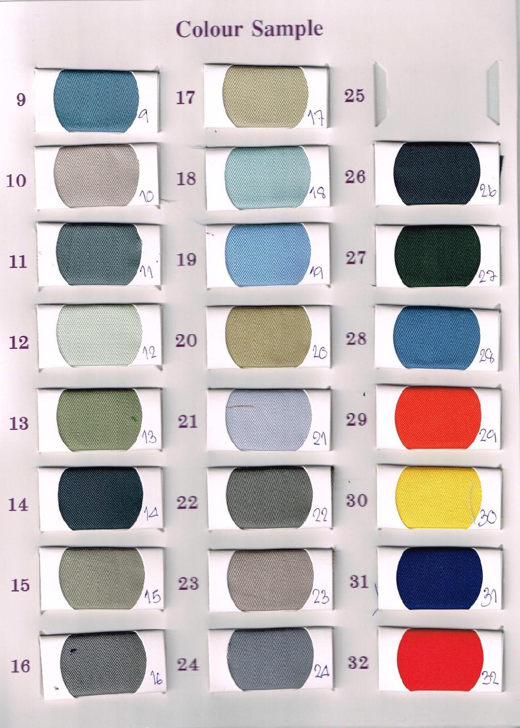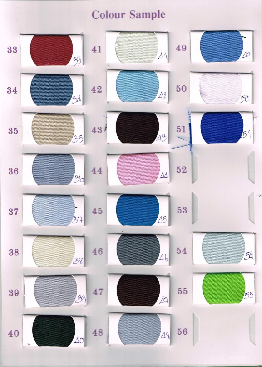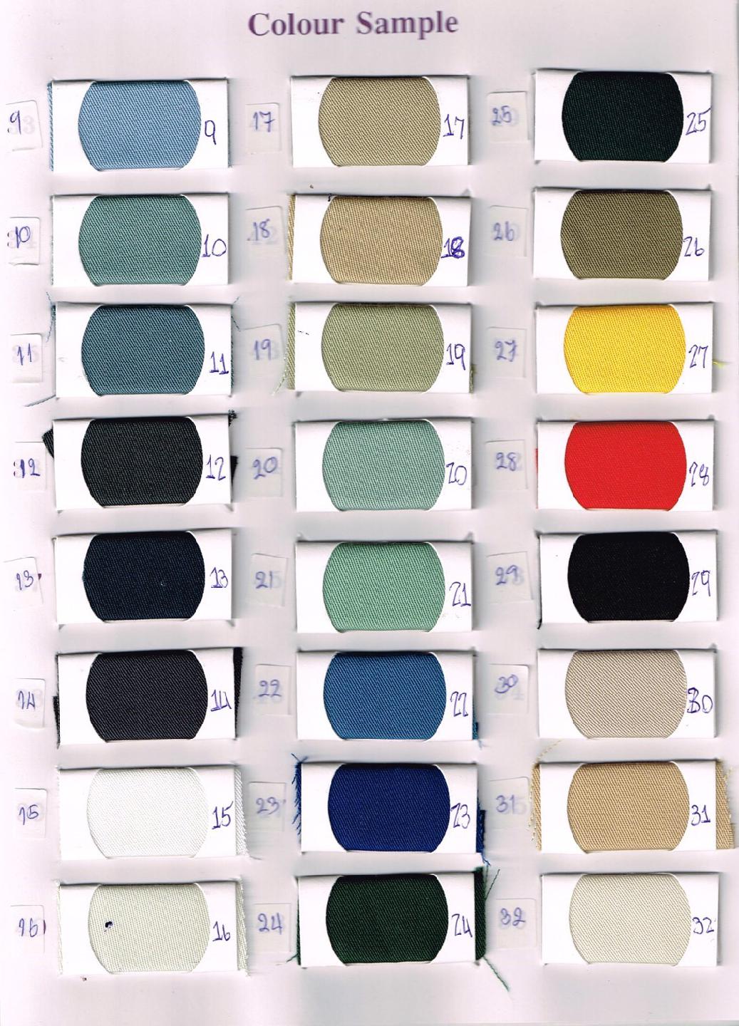 1. ผ้าคอมทวิว เป็นผ้าฝ้ายผสมใยสังเคราะห์ (TC) มีส่วนผสมของ Cotton 35% และ Polyester เส้นด้ายใยสังเคราะห์ 65% เนื้อผ้าแน่น ทอเส้นด้าย 210 เส้น คุณสมบัติ: ผ้าไม่ค่อยยับ อยู่ทรง ทนต่อแสงแดดได้ดี ซักรีดง่าย มีสีให้เลือกเยอะ ราคาไม่แพง