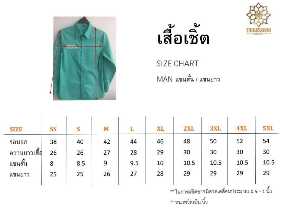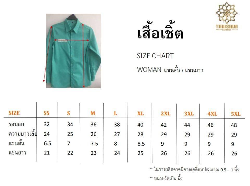 หมายเหตุ เนื่องจากเป็นงานตัด ความกว้างรอบอก ความยาว อาจมีคลาดเคลื่อน